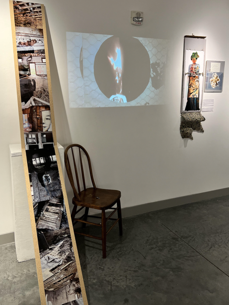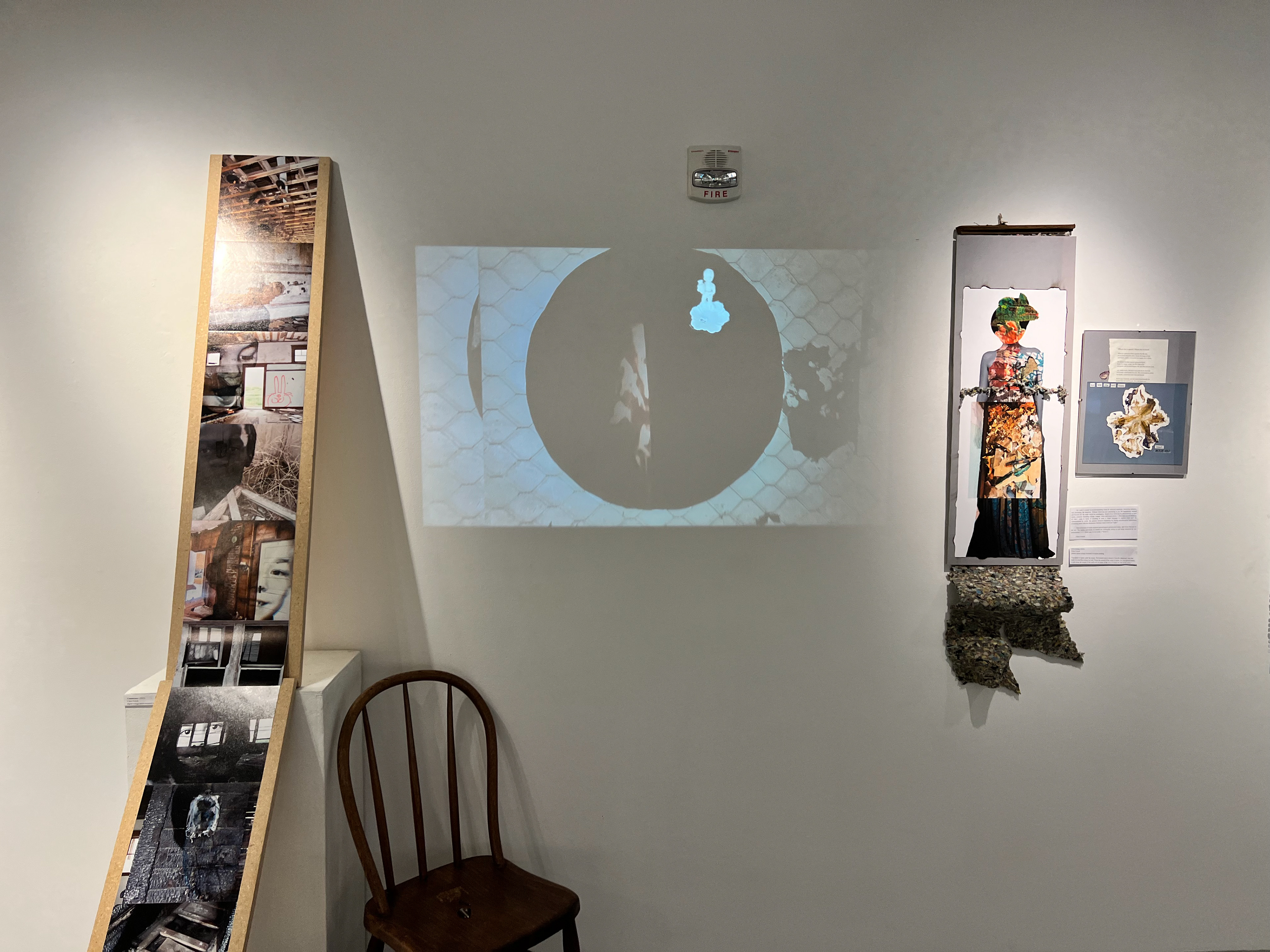 (Commorancy) Installation including prints of digital collage, video, & sound